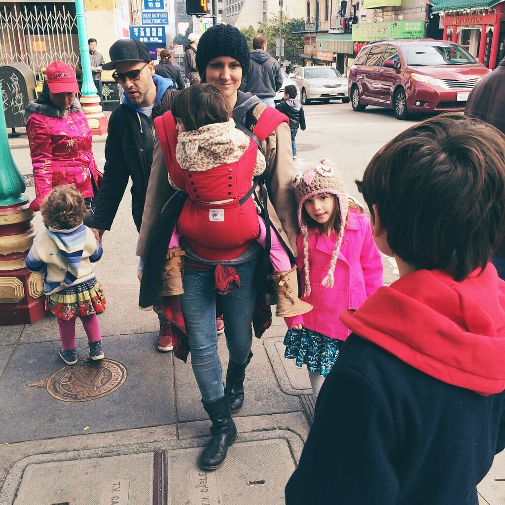 2 parents; 2 kids; lots of neighborhood walks; 1 beloved carrier